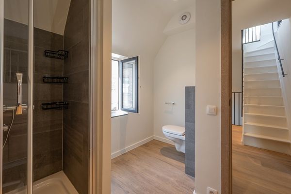 Op het gelijkvloers geniet u bovendien van een gezellige koer met aparte buiteningang, ideaal om uw fietsen veilig te stallen.