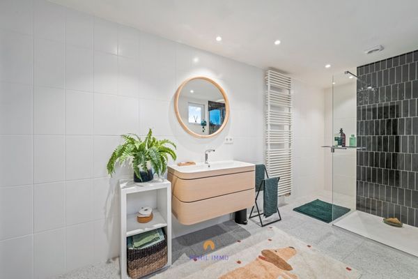 Op de eerste verdieping bevindt zich een recent vernieuwde badkamer met inloopdouche en aansluiting voor een ligbad, een apart toilet en drie volwaardige slaapkamers, waarvan twee met ingemaakte kasten. De zolderverdieping biedt een vierde slaapkamer en een polyvalente ruimte.